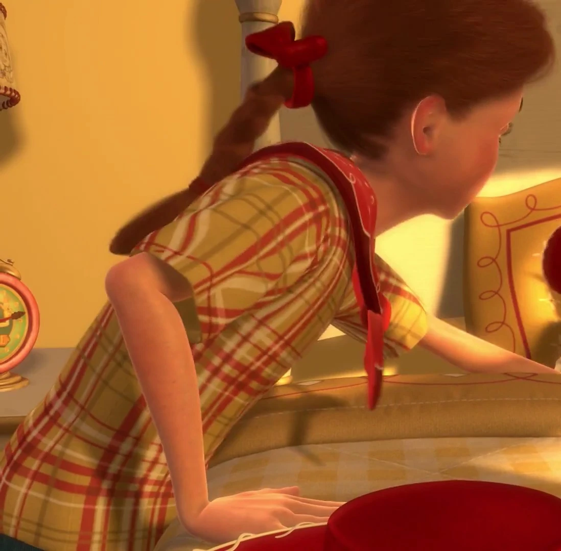 As the years pass, the underside of Emily's bed becomes littered with her old childhood toys and they, along with Jessie, even carry a coat of dust to show their untouched status. Just as Jessie feels like she has been forgotten, Emily reaches under the bed to find her, feelings of happiness welling inside her after years of being neglected, as Emily's makeup kit had been dropped nearby, causing accessories to be rolled under there. Emily smiled nostalgically at her old favorite toy. Jessie then spends one last ride in a car ride with Emily, believing they were together again. Emily even kept Jessie in her purse as a final gesture of affection. This time, sadly, Emily leaves her old toys, including Jessie, into a charity box, and Jessie watches in shock and sorrow through a hole in the box to watch her "whole world" officially leave her. The roots of Jessie's trauma and phobia of abandonment stems here.
