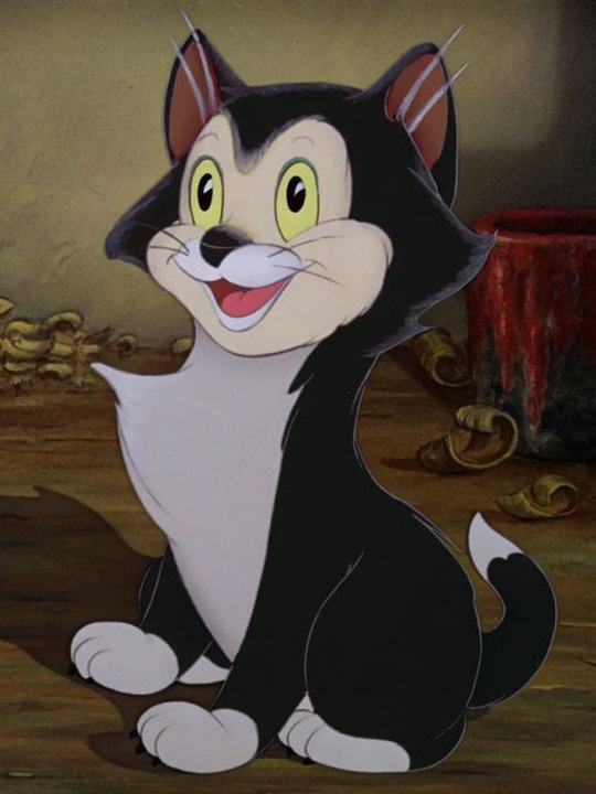 Figaro is an adorable Tuxedo Cat of kindly woodcarver Geppetto. Geppetto finishes his latest puppet, Pinocchio, and makes the wooden boy dance and play with Figaro. Figaro eventually gets annoyed with the puppet as the puppet mischievously kicks him in the behind, and smacks its foot. When the Blue Fairy brings Pinocchio to life, however, Figaro is not too shocked to see a living puppet and quickly takes a liking to the living Pinocchio. When Pinocchio doesn't return home on the night of his first day going to school, Figaro, Geppetto, and the goldfish Cleo leave their home to search for the wooden boy.